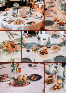 Ons shared dinner is een toegankelijk alternatief voor een sitting dinner waarbij het delen van de gerechten zorgt voor een natuurlijke interactie tussen de tafelgenoten. Het wordt geserveerd aan met zorg gedekte tafels waarop we per gang 3 verschillende gerechten serveren (vis, vlees en vegetarisch) en als dessert 3 zoete nagerechten.