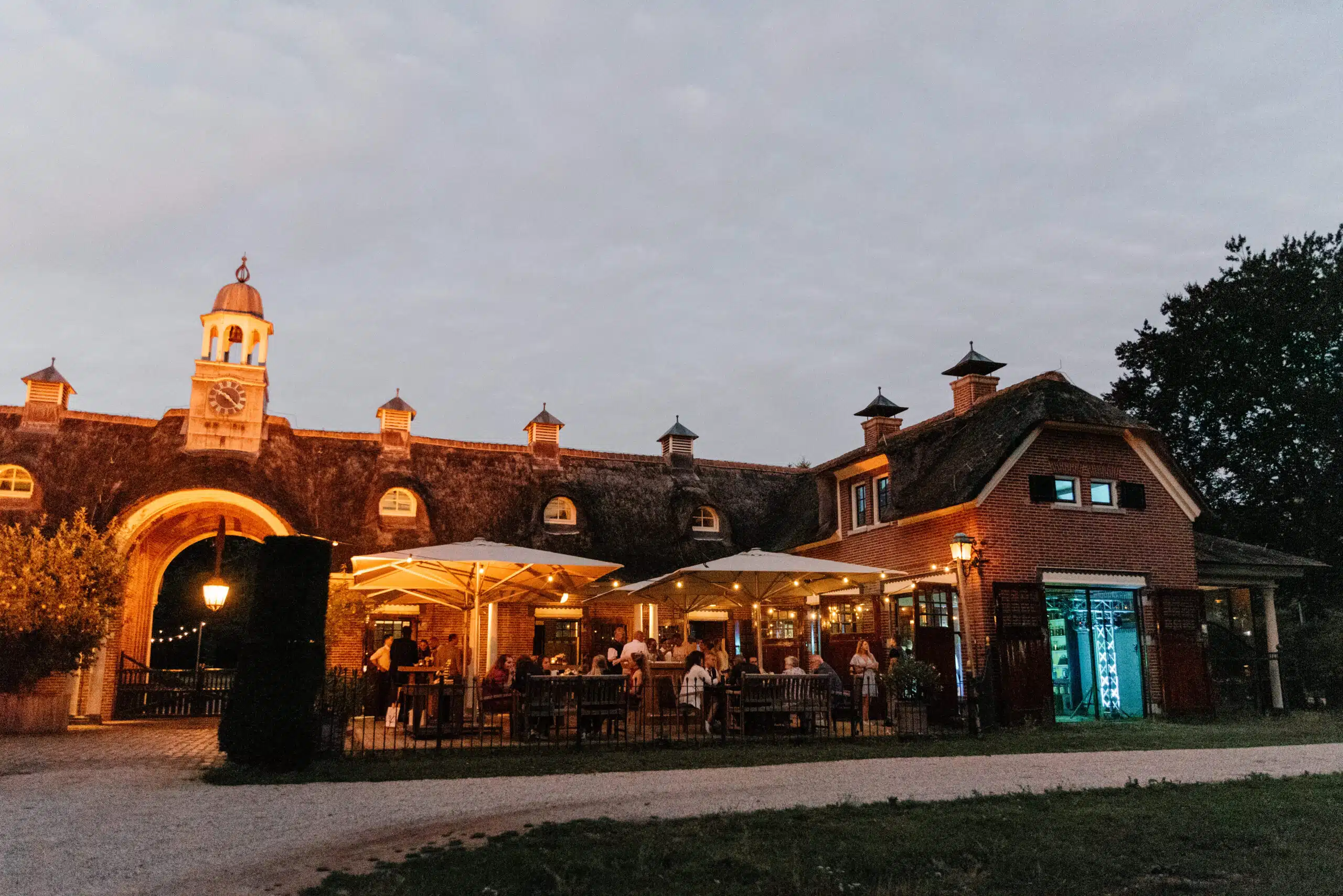 Het Koetshuis is een iconische locatie die met name in het zomerseizoen geschikt is voor allerhande ontspannen evenementen. De koetszaal met de openslaande deuren naar de stretchtent op terras Parkzicht is geschikt voor mooie particulieren bijeenkomsten maar zeker ook voor zakelijke bijeenkomsten als een hei-dag , relatie-event of afdelingsdiner. Achter het Koetshuis staat op onze privé-weide een mooie stretchtent, midden in het groen en uitkijkend op het monumentale Koetshuis. Een heerlijke plek voor bijvoorbeeld een uitgebreide barbecue.